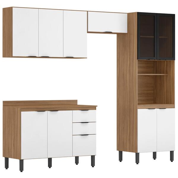Composição cozinha modulada firenze, com visual clean e moderno, conta com excelente qualidade e acabamento de alto padrão, possui estrutura em mdp de 15mm e tampo de 25mm de espessura, acabamento em pintura uv. Composta por 11 portas com dobradiças metálicas, sendo 2 portas com vidro na cor fumê tornando visivel o interior do móvel com sutileza, 1 porta basculante com pistão a gás, 2 gavetas com corrediças telescópicas com fechamento suave, nicho para temperos ou objetos decorativos, prateleiras internas com amplo espaço para armazenamento, equipada com puxadores cover em plástico abs na cor preto fosco, acompanha pés com regulagem de altura na cor preta. Confira em nosso site outros módulos desta linha, você pode compor sua cozinha da forma que desejar e fazer diversas combinações. Estes móveis chegarão em sua casa separados em 6 volumes.módulo 94331 aéreo 3 portas 120cmaltura 67 x largura 120 x profundidade 29 cmmódulo 94101 aéreo 1 porta basculante 70cmaltura 29,6 x largura 70 x profundidade 28,6 cmmódulo 94551 paneleiro 2 pt com vidro 70cmaltura 219 x largura 70 x profundidade 52 cmmódulo 93241 balcão 120cm com tampoaltura até o frontão do tampo 93 cmaltura 86 x largura 120 x profundidade 52 cmespaço do nicho no paneleiroalt 43 x larg 67 x prof 50 cmsistema de montagemparafusos, buchas e cavilhas.recomendação de limpezalimpar com pano úmido para retirar o pó. Não aplicar produtos abrasivos. não acompanham objetos de decoração e eletrônicos.* produtos de enfeites não inclusos.* para garantir a qualidade do produto dentro da embalagem, as caixassão revestidas por um plástico termoencolhível e todas as peças são separadas por isomanta, tudo para preservar e evitar o atrito entre as peças dentroda embalagem. Você contará também com um manual com o passo a passo para auxiliar no momento da sua montagem. Importante saberas imagens são meramente ilustrativas, não acompanham objetos de decoração e eletrônicos.a tonalidade da cor do produto pode variar de acordo a calibração de cores do seu monitor, a iluminação do ambiente ou sua percepção visual.ao receber a mercadoria, o cliente deve verificar a quantidade de volumes descritos na nota, as condições da embalagem, caso haja algum dano não assine o comprovante de recebimento e recuse a mercadoria.montagem, desmontagem e outras instalações serão de responsabilidade do cliente.não nos responsabilizamos, no ato da entrega, por subir escadas/elevadores ou pelo transporte por guincho em apartamentos. Eventuais despesas são de responsabilidade do comprador.confira as dimensões do produto e certifique-se de que passarão normalmente por supostos elevadores, portas, escadas ou corredores de sua residência.no momento do recebimento o comprador ou a pessoa que receber os produtos deve verificar se os produtos recebidos correspondem ao mesmo modelo e à mesma quantidade dos produtos adquiridos, o entregador equivocado pode entregar volumes de outra carga. Garantia de fábrica90 dias para eventuais defeitos de fabricação.