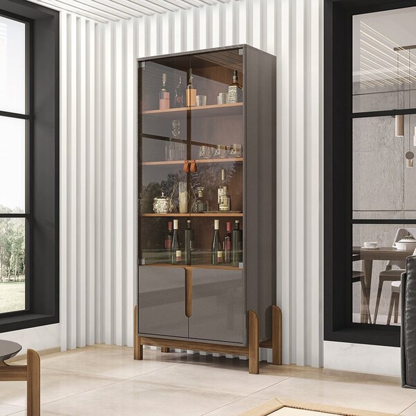 Cristaleira Lizz Cinza Perola/cedro