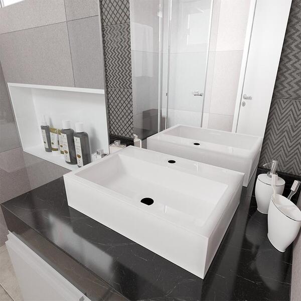 Marca: docelar linha: banheiro modelo: suprema altura da cuba: 12 cm largura da cuba: 35,5 cm comprimento da cuba: 50 cm profundidade da cuba: não se aplica tipo: de sobrepor material: marmoglass (mármore sintético refinado) forma: retangular quantidade de furos para torneir...