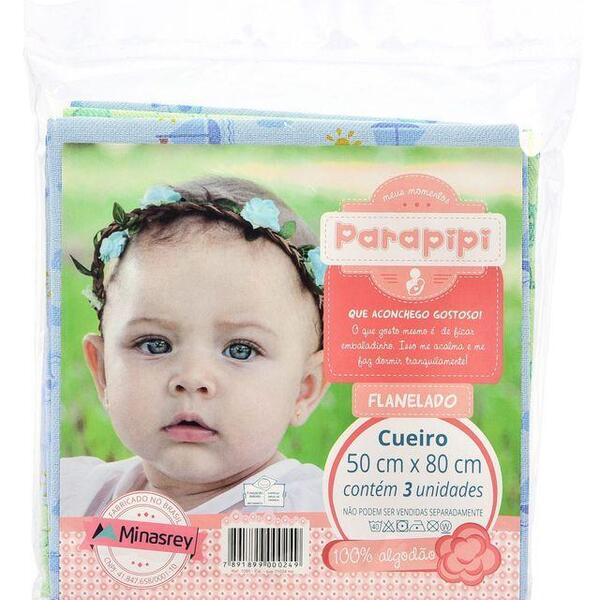 Conteúdo : 01 pacote com 03 cueiros estampados, estampas variadas, 60 cm x 80 cm , 100% algodão, flanelado.