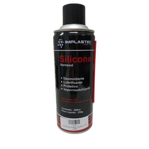 desmoldante silicone implastec atenção -  para envio por sedex pedido máximo de 6 unidades ! para dúvidas e orçamento   entre em contato direto com nossa equipe comercial através do comercial@politone.com.br  telefone (19) 3508-0215 ou whatsapp (19) 99471-8694.   o desmoldante silicone implastec possui um excelente desempenho lubrificante e desmoldante. Sua formulação permite a aplicação nas áreas de eletrônica e metal mecânico. O composto ativo é o silicone apresentando propriedades hidrofóbicas boa estabilidade térmica e rigidez dielétrica. O silicone aerosol proporciona a formação de uma fina película lubrificante e desmoldante de longa duração. principais aplicações o desmoldante silicone pode ser aplicado nos seguintes processos: – desmoldante em processos de injeção de peças plásticas – mecanismos eletrônicos gerais e de precisão – antioxidante e desengripante – lubrificação de borracha e peças plásticas modelos não se aplica. características – densidade a 25 °c: 0 97; – ponto de congelamento: inferior a -25 °c; – pressão de vapor a 20 °c: inferior a 1 mmhg; – densidade do vapor (ar = 1): superior a 1 00; transporte e armazenagem o silicone aerossol deve ser armazenado na embalagem original em local coberto seco e ventilado afastado de fontes de calor ou ignição e de produtos oxidantes temperatura máxima de 50 °c. A lata de aerossol não deve ser perfurada. O gás utilizado como propelente pode ser inflamável. O descarte de embalagens de aerossol está sujeito à legislação específica. Mantenha afastado de crianças animais e pessoas inaptas. embalagem – lata metálicas em aerossol com 250 g / 400 ml; – fluido de silicone comercializado em embalagens de 1l 5l e 200l; manuseio e método de aplicação use máscara e óculos de proteção contra eventuais vapores e respingos. Use em local com ventilação suficiente. Mantenha o frasco do silicone aerossol na posição vertical a uma distância de aproximadamente 20 cm do local de aplicação. observações as informações e dados contidos neste boletim correspondem aos nossos conhecimentos atuais coligidos por pessoal técnico capacitado e confiável. Devem ser tomados como orientação e não como especificação garantida. Em qualquer caso de uso o cliente deverá testar o desempenho contando com informações que possamos fornecer. Indicações de uso não são sugestões para se infringir patente ou legislação. Uma vez que não temos controle sobre o uso por terceiros nossa responsabilidade se limita apenas ao nosso produto.