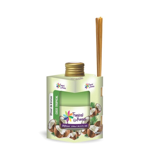 Os difusores caixinha são excelentes aromatizantes para ambientes.    sua embalagem contém 250ml, acompanhando 6 varetas para utilização.    pode ser usado em qualquer ambiente.    modo de usar:  1- retire o produto da embalagem; 2- desencaixe a tampa externa e abra o frasco retirando a tampa interna que veda o produto; 3- encaixe novamente a tampa externa no frasco; 4- introduza as varetas no frasco para que absorvam o perfume; 5- após 4 horas, troque as varetas de lado.   * coco:  é aroma frutal doce que estimula o bem-estar e acalma os nervos. Nos faz sentir uma grande energia no exato momento em que o sentimos.