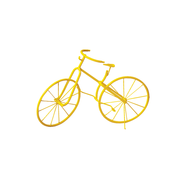 Esta peça decorativa no formato de bicicleta é produzida em ferro na cor amarela. O enfeite com estilo retrô mede 22,5 cm de altura, 36 cm de altura e 11 cm de profundidade. Seu peso é de 0,5 g. O produto é nacional.