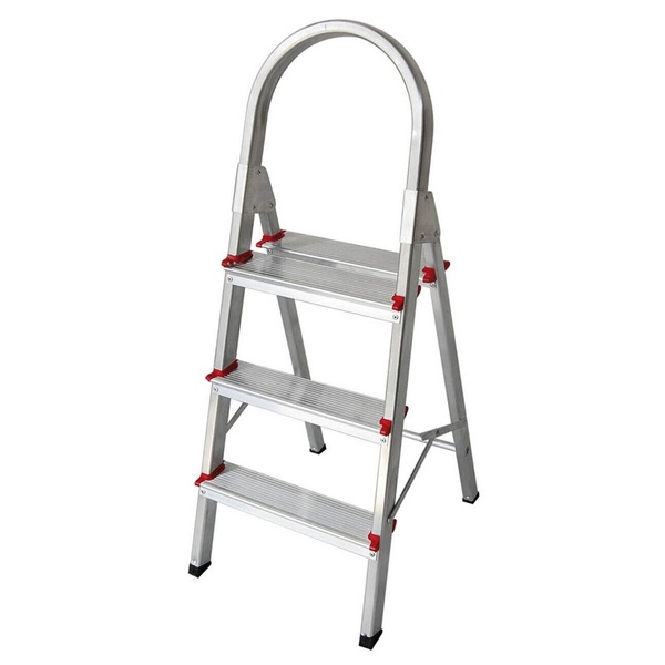 Escada alumínio new star 3 degrausfabricada com materiais de alta resistência, para ser utilizados na indústria, comércio e residências.escada doméstica 3 degraus em alumínio.reforçada, leve, segura e super resistente.especificações:marca: art factory fabricado em: liga de alumínio 6063/6005rebites de alumínioponteiras em pvc na cor vermelhaacabamento em polietilenosapatas em pvc.dimensões: altura total: 117 cm x altura útil: 63,2 cm x largura: 42 cm x comprimento aberta: 58,5 cm x comprimento fechada: 11 cmpeso da escada: 3 kgpeso suportado: 120 kg