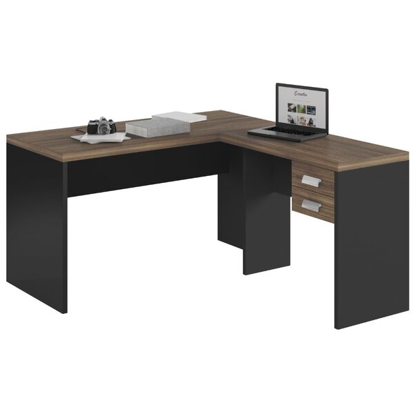 A escrivaninha 2 gavetas studio l da caemmun chegou para completar seu escritã³rio ou home office! Com design sofisticado, vai inovar com estilo seu ambiente de trabalho. O mã³vel possui em seu tampo tamburato de 40 mm, laterais de 25 mm, gaveteiro com corrediã§as telescã³pic...
