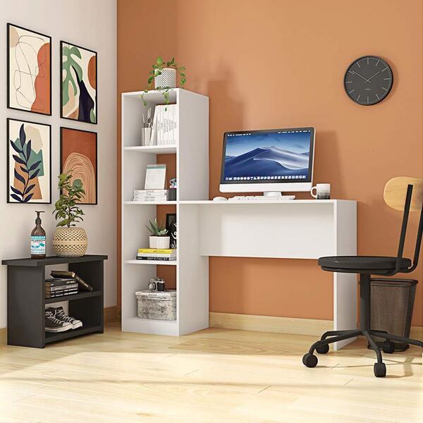 Escrivaninha Com Prateleiras Branca Tower Caemmun