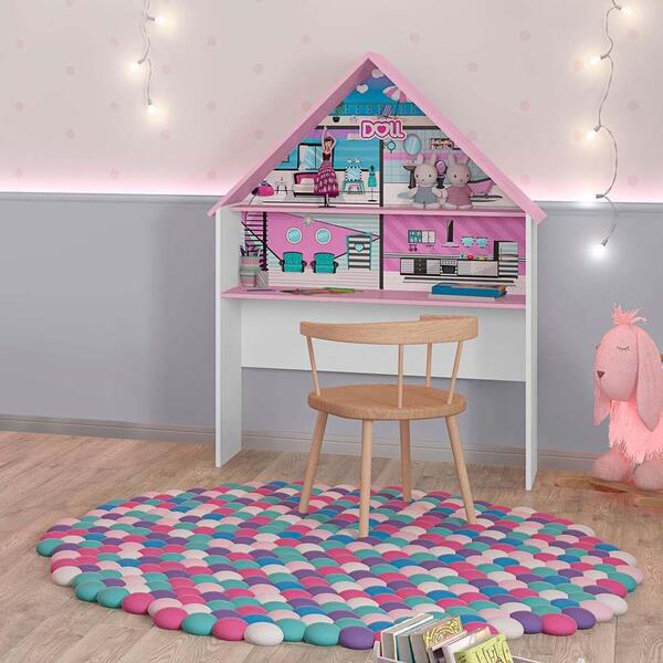 Escrivaninha infantil doll diversã£o com 1 prateleira - rosa/brancoa escrivaninha doll foi desenvolvida especialmente para trazer mais alegria e diversã£o para quarto da sua filha. Conta com 1 prateleira para colocar objetos e brinquedos. Seu formato em casinha deixa ela muit...