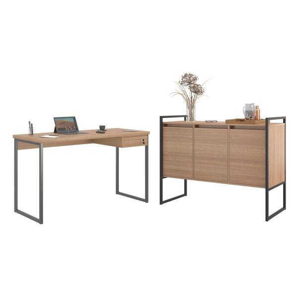 Conjunto escrivaninha e buffet obuffetveio para compor sua sala ou cozinha com seu charme industrial para a renovação do seu ambiente bonito e moderno. Buffet em mdp perfex 15mm com acabamento bordas em abs, tampo superior, compartimento com 3 portas estrutura em aço 20x20 co...