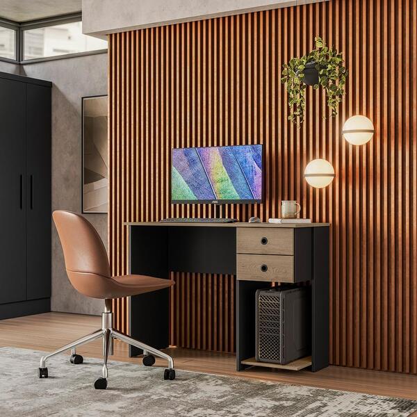 ModeloEscrivaninha Favara Preto Fosco Carvalho Rustico