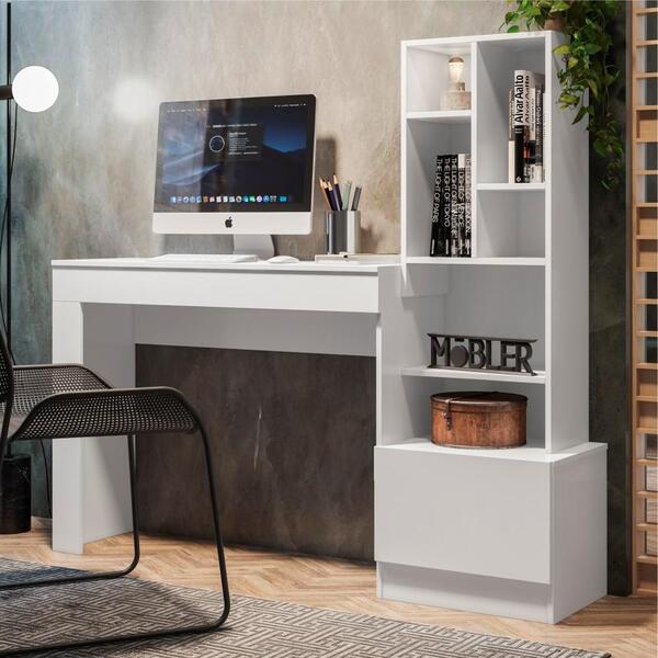 Aescrivaninhacontã©m um design moderno para sua casa e de facil organizaã§ã£o, o produto tambã©m ã© uma penteadeira. Possui bliblioteca organizadora lateral e corrediã§as telescã³picas. Produto feito em mdp 15 mm. Informaã§ãµes do produto: escrivaninha: altura:138cm largura:1...
