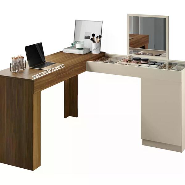 Escrivaninha penteadeira de canto 3003023, ideal para quem busca modernidade e sofisticaã§ã£o ao ambiente. Estrutura em mdp de 15mm, pintura com revestimento mob print (fosco/brilho). Composta por uma porta com dobradiã§as metã¡licas, prateleira interna, painel fixo com espel...