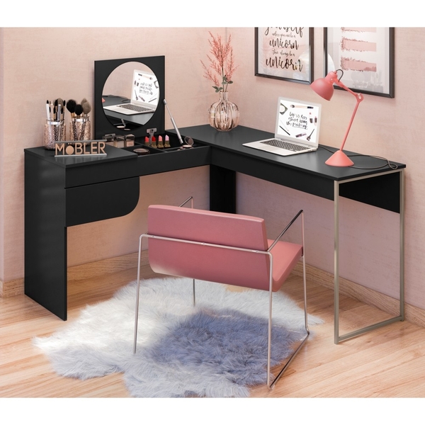 Escrivaninha Penteadeira Spader Com Espelho Preto