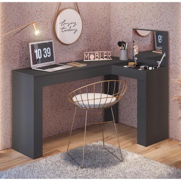 Escrivaninha Penteadeira Wagner Com Espelho Preto