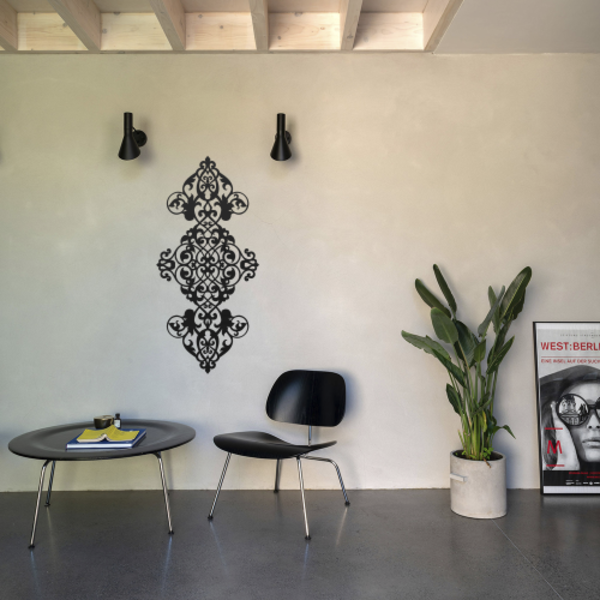 Um arabesco é uma combinação elaborada de formas geométricas podendo ser abstrata ou com padronagem semelhante ao desenho de plantas. Esse estilo decorativo está fortemente associado à riqueza da arte islâmica e garante um resultado com aparência harmoniosa e contemporânea. As esculturas são peças que destacam as paredes vazias de seu ambiente e reinventam um novo lugar sendo uma opção super prática e original. a cortes cores é especialista em transformar aço em arte desde 2007. Todas as nossas peças são executadas em aço galvanizado com pintura eletrostática o que torna nossos produtos extremamente duradouros podendo ser usado tanto em ambientes internos quanto externos. especificações: material: aço galvanizado altura: 100cm largura: 35cm peso: 1800g cores: preto fosco marrom fosco instalação: instalação simples fácil e rápida apenas  parafusar. importante: - podem ocorrer variações na cor do produto conforme o contraste e brilho do monitor luminosidade local ou percepção visual. - imagens ambientadas são meramente ilustrativas os objetos e demais móveis não acompanham o produto.