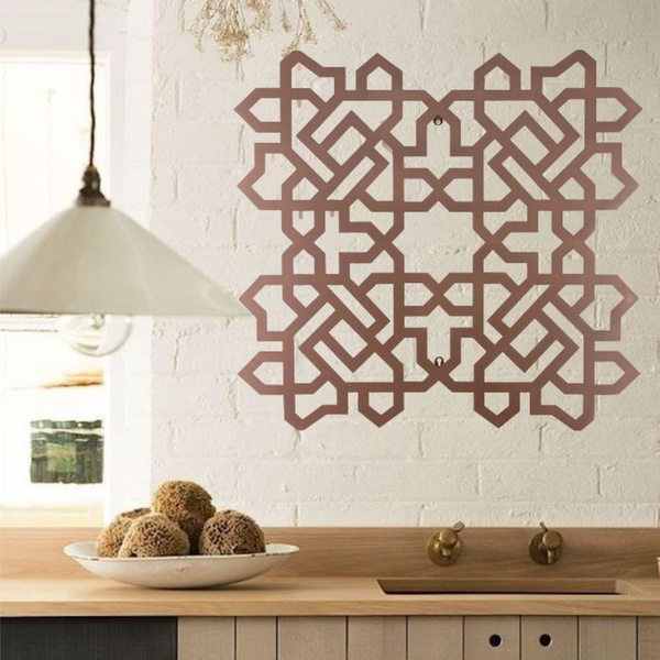 Contemporânea e imponente a escultura quadrado árabe oferece um luxuoso design resultado do dinamismo de suas linhas alternadas e repetitivas. Pode ser usado em diversos ambientes seja sala quarto escritório ou onde sua imaginação permitir. a cortes cores é especialista em transformar aço em arte desde 2007.todas as nossas peças são executadas em aço galvanizado com pintura eletrostática o que torna nossos produtos extremamente duradouros podendo ser usado tanto em ambientes internos quanto externos. especificações:  material: aço galvanizado espessura: 1 2mm altura: 80cm  largura: 80cm  peso: 3050g cor: marrom fosco instalação: instalação simples fácil e rápida apenas  parafusar. importante: - podem ocorrer variações na cor do produto conforme o contraste e brilho do monitor luminosidade local ou percepção visual. - imagens ambientadas são meramente ilustrativas os objetos e demais móveis não acompanham o produto.