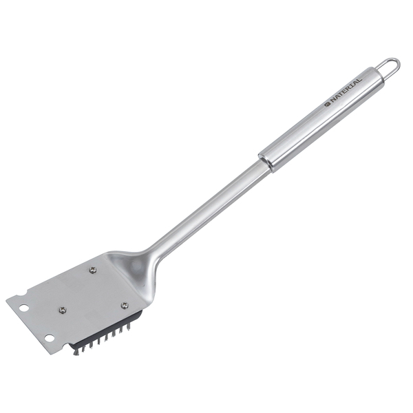 Material produzido em inox escovado, com cerdas fortes e que são resistentes ao atrito com os mais diversos tipos de superfície. Essas são características da Espátula de Limpeza Multifuncional, da Naterial.