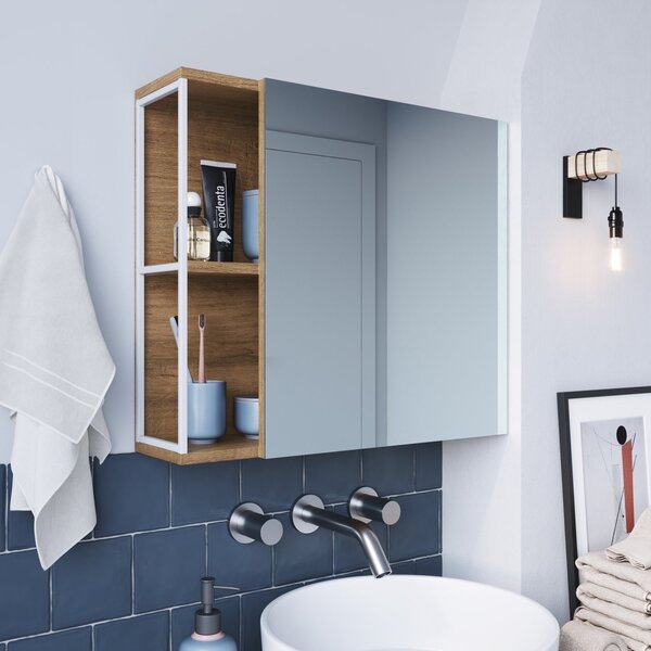Espelheira para banheiro 53x60cm branco/mel. Você quer ter um ambiente otimizado e eficiente na sua casa!? Para isso temos o armário para banheiro p1015 da placa e ponto! Esta espelheira ajuda a guardar seus produtos de higiene e limpeza, organizando o ambiente e deixando-o ...