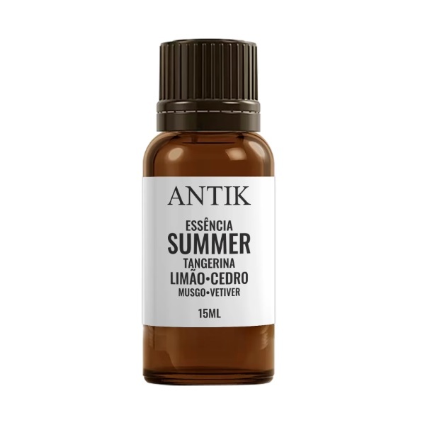 A inspiração que deu origem a fragrância summer há mais 20 anos foi muito especial.imagine-se na em uma linda praia na luminosidade da manhã. O silêncio é apenas quebrado pelo barulho das ondas e de seus passos na areia.respire fundo e sinta a mistura de perfumes no ar vindos do mar e das matas ao redor.a icônica fragrância summer da antik é a tradução desse mágico instante. As notas cítricas de limão tangerina amadeiradas de cedro e carvalho tendo fundo de musgo e vetiver compõe esta deliciosa criação.dê um toque de sofisticação e bem-estar a qualquer ambiente pingando algumas gotas da essência summer nos difusores elétricos e potpourris. descrição olfativa:fragrância clássica e elegante.saída: notas frescas de frutas cítricas como tangerina e limão.corpo: notas amadeiradas de cedro e carvalho.fundo: notas de musgo e vetiver. Como usar:pingue algumas gotas da essência em peças cerâmicas potpourris ou no difusor elétrico.