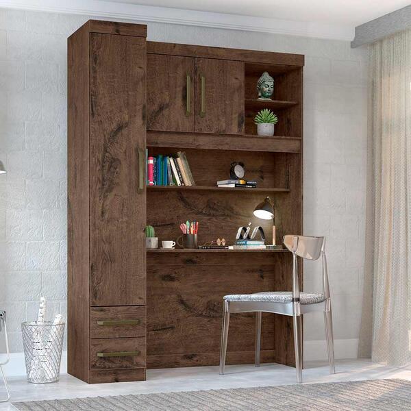 Dimensões do produto:largura total: 143,6 cm.módulo com cabideiro:altura: 203,8 cm; profundidade: 46,4 cm.módulo com escrivaninha:altura: 196,8 cm; profundidade: 35 cm.itens inclusos:1 módulo para escritório ou quarto.a escrivaninha com estante é ideal para você que deseja ad...