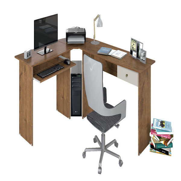 Versatilidade e organização você encontra na estação de trabalho max, além de ser utilizada no escritório, pode ser usada em casa, para que você tenha um espaço para estudos ou para o home office. Contém suporte retrátil para teclado e gaveta. Seu formato em l com acabamento ...