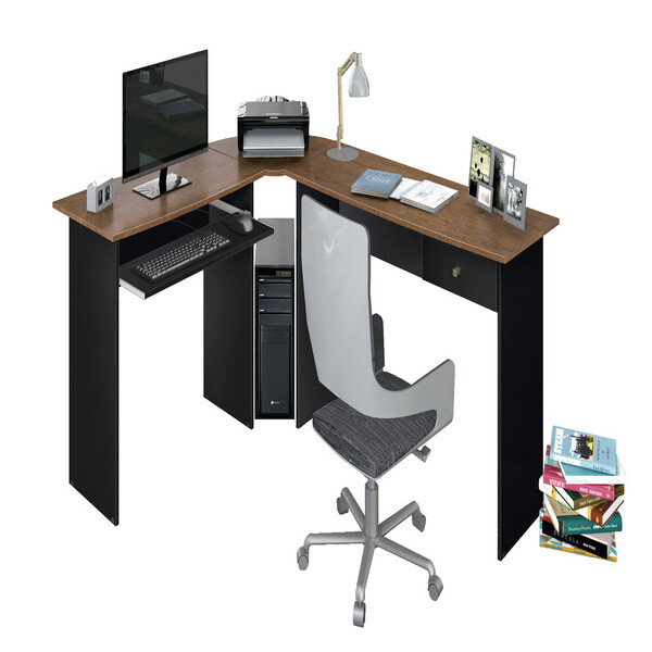 Versatilidade e organização você encontra na estação de trabalho max, além de ser utilizada no escritório, pode ser usada em casa, para que você tenha um espaço para estudos ou para o home office. Contém suporte retrátil para teclado e gaveta. Seu formato em l com acabamento ...