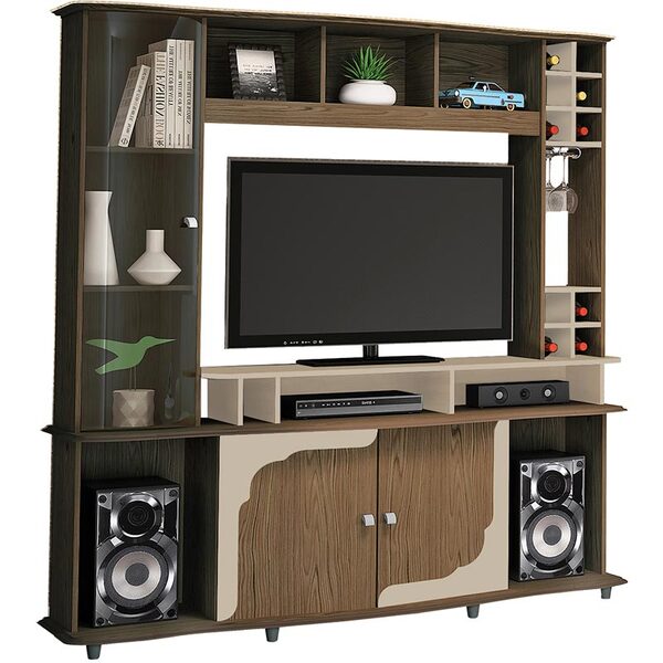 Estante cássia - colibri- estante fabricada em mdp/mdf, possui 3 portas de bater, adega para garrafas e porta taças, espaço para tv de até 46", e acabamento em pintura ultravioleta brilho e fosco.imagem meramente ilustrativa. Produto refere-se somente a estante cássia.