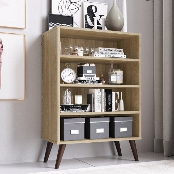 Estante retrô com 4 prateleiras . A estante retrô da completa móveis é um produto versátil, ideal para organizar seu lar e valorizar a decoração da sua casa deixando-a ainda mais moderna e com estilo. Pode ser utilizada em diversos ambientes como quarto, sala e escritório. C...