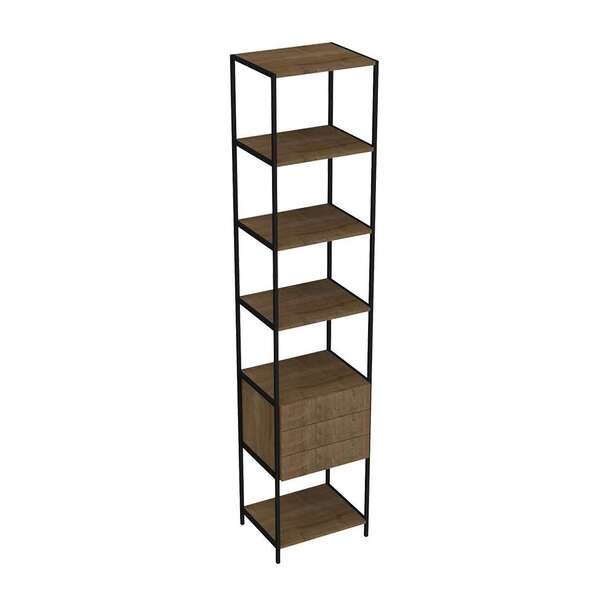 Por que a estante steel quadra?a sua sala de estar vai ficar ainda mais charmosa com a estante steel quadra. Confeccionada em madeira ecológicamente correta, ela possui um visual mais rústico e dará personalidade ao ambiente. Sem contar a sua estrutura em aço, que garante segurança, as três gavetas e prateleiras para acomodar os seus objetos de decoração e livros. Gostou, né?