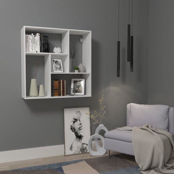 Estante wind branco. a estante suspensa wind é produzida em mdp de 15mm com revestimento em bp o que garante a estabilidade e durabilidade do produto, composto por nichos em tamanhos diferentes, que reúnem um design minimalista e moderno para deixar seu escritório/quarto/sal...