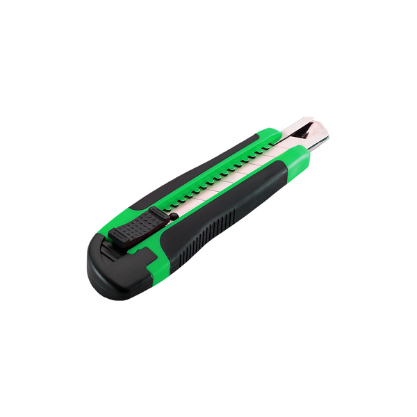 Estilete c/trava retangular renna     •material: corpo em abs. •material: corpo em abs (reforçado). •lâmina em aço. •cabo emborrachado antiderrapante. •travamento da lâmina por trava retângular