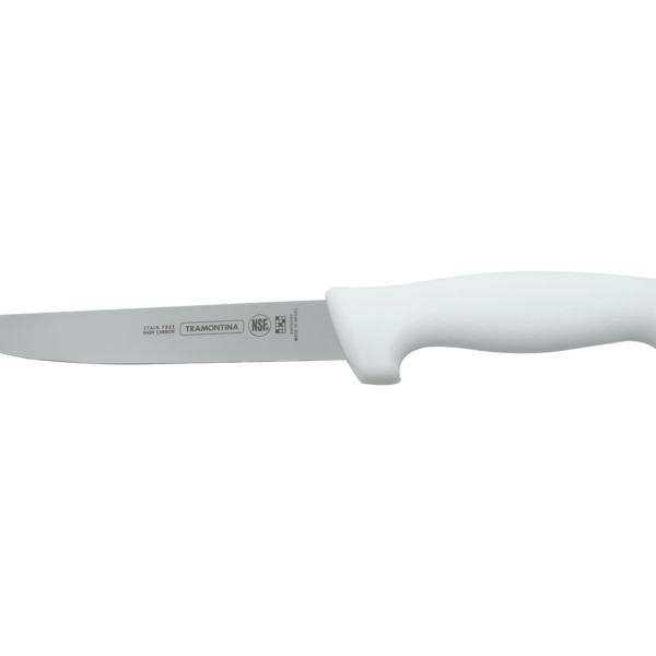 Lâmina de aço inox din 1.4110.cabo de polipropileno. Qualidade e durabilidade para profissionais que trabalham muito. Com tecnologia de ponta, as facas profissionais estão sempre preparadas para entrar em ação e fazer bonito com qualquer ingrediente. Eficiência é o que não falta. A altíssima qualidade das lâminas, resultado do tratamento térmico composto por têmpera (aquecimento da lâmina), subzero (resfriamento de 50 a 196 graus negativos) e revenimento (aumento da elasticidade do aço) garante vida longa e eficiente. A anatomia e ergonomia do cabo de polipropileno texturizado, injetado diretamente sobre a espiga da lâmina, oferecem segurança e conforto durante o manuseio. A proteção antimicrobiana inibe e reduz o crescimento de bactérias e fungos. Essa tecnologia é incorporada durante o processo de fabrição do cabo e dura por toda vida útil do produto, mas não não elimina a necessidade de lavá-los.