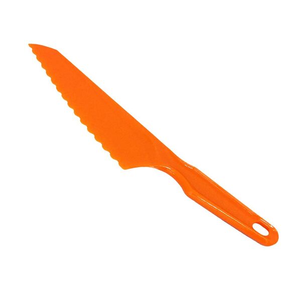 Faca para pão, bolo e tortas de plastico. Peso: 32 gramas comprimento: 30 cm cor: laranja importado por interponte