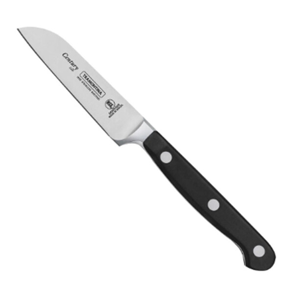 a faca tramontina para legumes/frutas 3 polegadas com lâmina em aço inox com cabo policarbonato e fibra de vidro da linha century irá tornar a execução dos processos ainda mais práticos. Ideal para o uso intenso a faca para legumes da tramontina recebe tratamento térmico composto por têmpera (aquecimento da lâmina) sub-zero (resfriamento de -50° c a -196° c ) e revenimento (aumento da flexibilidade do aço especial), garantindo vida longa e eficiente.    a lâmina é produzida em aço inox especial, com cabo em policarbonato com fibra de vidro. Para tornar o manuseio ainda mais seguro e confortável, o cabo é anatômico e ergonômico. Surpreenda-se com as facas da linha century e faça a diferença na sua cozinha.   mtb