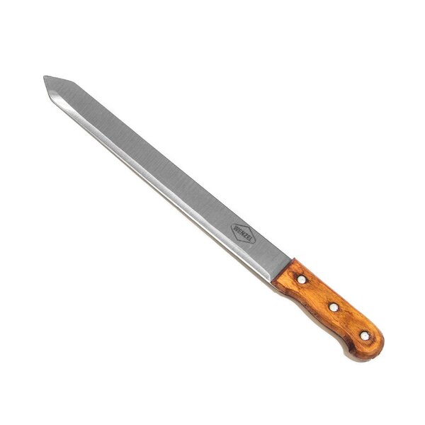 Facão ponta direita wenzel 16" pré-afiado com cabo de madeira._x000d_ produto ideal para ser utilizado em camping, caça e pesca, trilhas, aventuras e atividades similares.ferramenta produzida em chapa de 2 mm de espessura de puro aço carbono 1070 com adicional de cromo e dure...