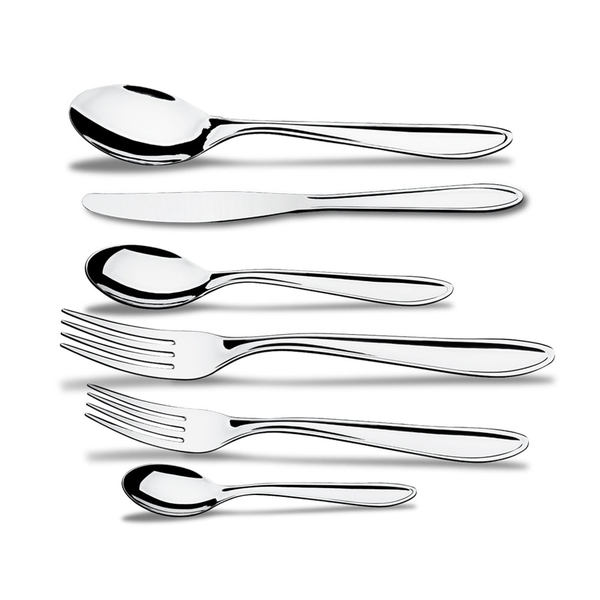 | Contém na Embalagem | 06 Colheres de Mesa; 06 Garfos de Mesa; 06 Facas de Churrasco; 06 Colheres de Sobremesa; 06 Garfos de Sobremesa; 06 Colheres de Chá; 06 Colheres de Café. |