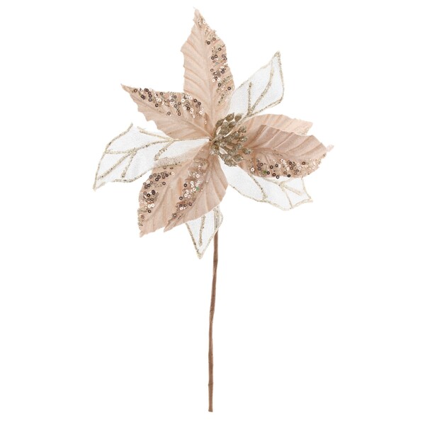 Flor de Natal Poinsétia Champanhe 23x23x30cm Cromus