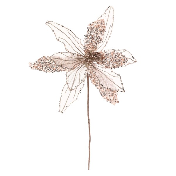 Flor de Natal Poinsétia Dourada e Branca Glitter 30x22x22cm Cromus