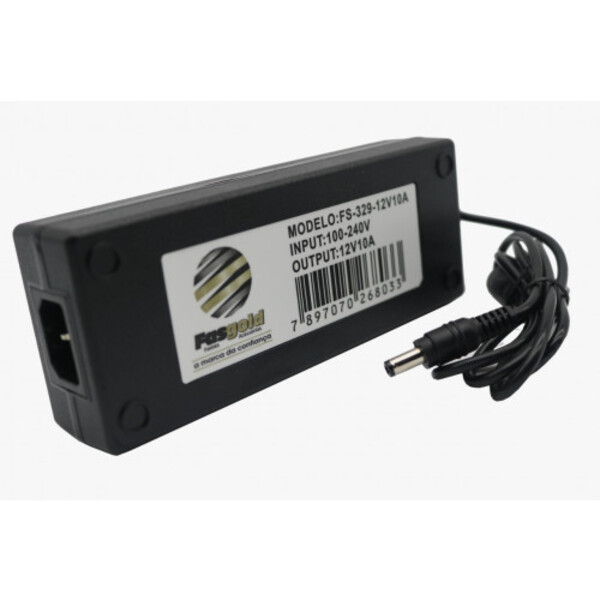 Fonte de alimentação de 12v / 10amodelo: fs-329especificações: fonte 12v / 10a estabilizada bivolt automáticomodelo: fonte 12v / 10atensão de entrada: 90 ~ 260 vca, 50/60 hztensão de saída: 12 vcc +/- 10% tolerânciacorrente de saída: 10a (120 watts)proteções:psi (protetor contra surto e inteferência);smart chip (chip inteligente contra sobrecarga).função nobreak: nãotrimpot para regulagem: não (bivolt automático)garantia: 1 ano após a compra.