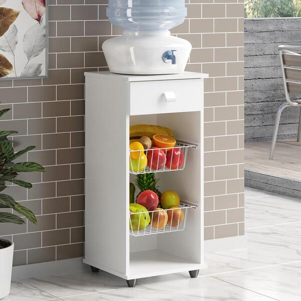 A fruteira Erica é um móvel funcional e prático, projetado para organizar e armazenar frutas, legumes e outros alimentos de forma conveniente. Ela combina um design moderno com materiais duráveis, tornando-a uma opção versátil para cozinhas, despensas ou áreas de refeições. Possui uma gaveta ideal para armazenar itens menores, como talheres, guardanapos ou pequenos utensílios de cozinha. Possui 2 cestos metálicos que são projetados para armazenar frutas e legumes de maneira organizada. O design elegante e moderno do móvel adiciona um toque estético à sua cozinha, tornando-o uma peça funcional e decorativa ao mesmo tempo.