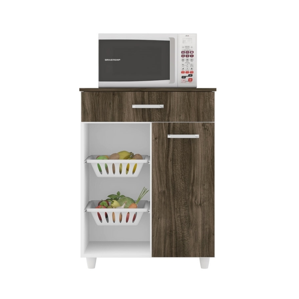 Fruteira Julia Branco e Carvalho O Fruteira Julia é compacta e possui um visual clean para dar um ar de mais organizado ao seu ambiente. Possui 2 cestos de frutas e 1 gaveta, para deixar o ambiente mais organizado. Ideal para você que quer economizar espaço sem deixar de lado...