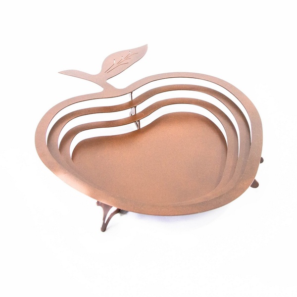 Com formas representativas e seu design inovador a fruteira maçã consegue ser linda e útil no seu dia-à-dia para brilhantar o ambiente onde ela estiver colocada. ela é extremamente útil e pode ser colocada em cima de qualquer superfície e consegue reservar inúmeros tipos de alimentos. a cortes cores é especialista em transformar aço em arte! Todas as nossas esculturas são fabricadas em aço galvanizado com pintura eletrostática o que torna nossos produtos extremamente duradouros. especificações: altura: 7cm largura: 40cm peso: 1000g cores: preto fosco marrom fosco importante: - podem ocorrer variações na cor do produto conforme o contraste e brilho do monitor luminosidade local ou percepção visual. - imagens ambientadas são meramente ilustrativas os objetos e demais móveis não acompanham o produto.