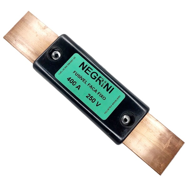 Fusível tipo faca, corpo de baquelite, corrente nominal 400a, tensão de isolação 250vca. Fabricante: Negrini