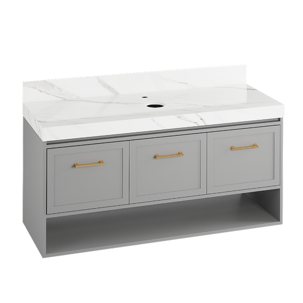 Gabinete para Banheiro 100cm Marmorizado e Cinza Agata Agardi