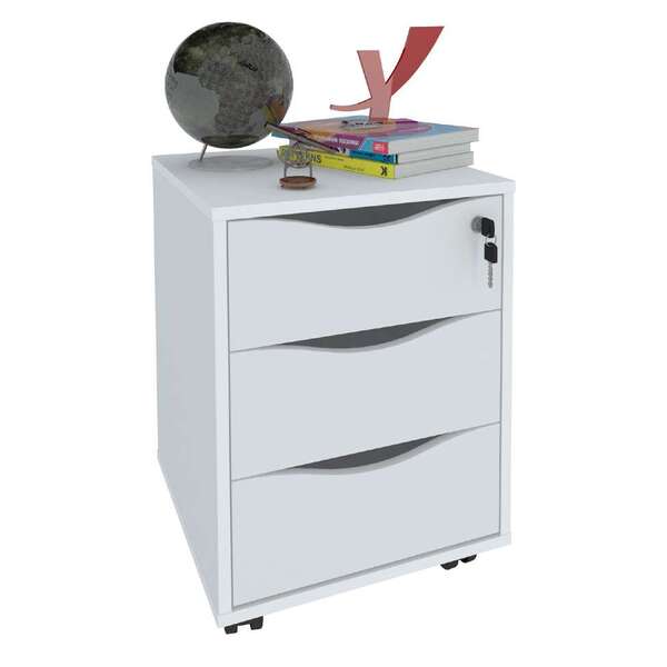 Que tal o gaveteiro face?para elevar a praticidade da sua rotina profissional, nada melhor do que combiná-la com o gaveteiro face. Com 3 gavetas, ele pode ser posicionado ao lado ou embaixo da mesa, dependendo, claro, do tamanho que escolher para a sua área de estudos ou home office, oferecendo espaço para que papéis, documentos e outros itens primordiais fiquem sempre à mão. De quebra, o tampo também garante um apoio rápido para celular e copos ou permanente para telefones e abajures, enquanto a cor branca é facilmente inserida em sua decoração. Ah, reparou que a peça possui rodízios? Isso permite uma locomoção mais simplificada, seja para apenas mudá-lo de lugar ou para faxinar o local.