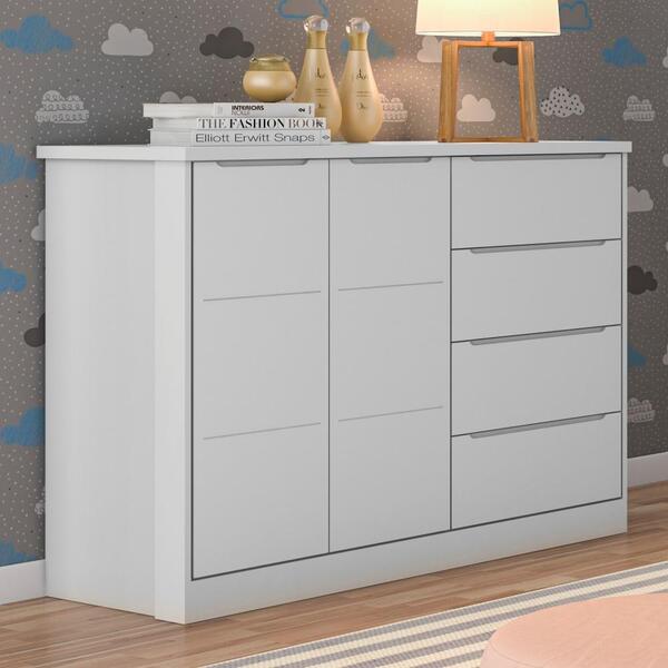 Cômoda conta com cabideiro metálico e corrediças telescópicas. Possui 2 portas e 3 gavetas com puxadores cava. Elaborada 100% em mdf. Dimensões do produto: cômoda: altura: 97 cm largura: 128 cm comprimento: 52 cm informações do produto: material principal: mdf cor:cinza gavetas: sim, (3) portas: sim, (2) pés: não itens inclusos: 01 cômoda. Kit completo para montagem, manual de instruções para montagem. Garantia: 3 meses contra defeito de fabricação. Informações complementares: - fotos meramente ilustrativas do produto no ambiente. - os objetos que ambientam as fotos não acompanham o produto; - verificar descrição e tamanho do produto antes da compra. - avaliar a mercadoria no ato do recebimento e recusar em caso de divergência ou avarias. - mantenha as informações de contato e endereço de entrega atualizados para entrarmos em contato caso necessário. - limpar com flanela ou pano macio seco, não utilizar produtos abrasivos, desengordurantes, álcool ou solvente. Não expor o produto diretamente à luz solar e à umidade. * sugerimos a contratação de um montador profissional para a montagem do produto. Não nos responsabilizamos por avarias causadas no ato da montagem. * não nos responsabilizamos pela montagem e desmontagem do produto no ato da entrega e devolução, assim como os custos gerados nestas situações. * a transportadora entregará o produto no andar térreo do endereço de entrega. * não nos responsabilizamos por subir escadas, corredores e elevadores ou transporte por guincho em apartamentos.