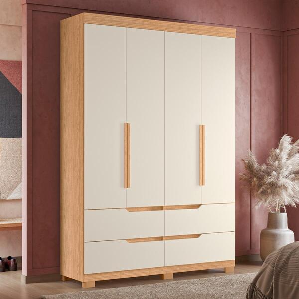 O guarda- roupa tem um modelo moderno o que traz elegância para seu quarto além de um amplo espaço interno.em mdp04 gavetas com corrediças telescópicaspuxadores de mdf revestidoscabideiros de alumíniopés inclusosinterna 100% na cor do produto.dimensões do produto:altura: 230 ...