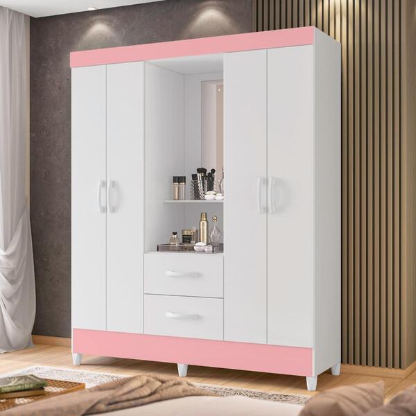 Guarda Roupa Capelinha Dubai Branco Rosa