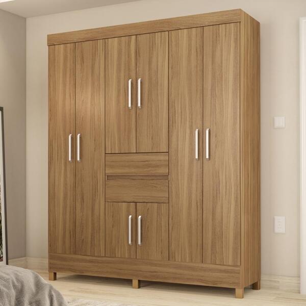 O guarda roupa é moderno, prático e possui um amplo espaço para que você possa guardar tudo o que quiser. Possui ótimo espaço inferior para acomodar sapatos. Pés em pvc medidas do produto: altura:201 cm largura:162 cm comprimento:47 cm informações complementares: acompanha espelho: não cor:amendola gavetas: sim (2) prateleiras: sim (4) cabideiros: sim (3) portas: sim (8) material: mdp peso suportado: 40kg distribuídos itens inclusos: - 01 guarda roupa; - kit completo para montagem, manual detalhado de instruções para montagem. Garantia: 3 meses contra defeito de fabricação. Informações adicionais: - fotos meramente ilustrativas do produto no ambiente. - os objetos que ambientam as fotos não acompanham o produto; - verificar descrição e tamanho do produto antes da compra. - avaliar a mercadoria no ato do recebimento e recusar em caso de divergência ou avarias. - mantenha as informações de contato e endereço de entrega atualizados para entrarmos em contato caso necessário. - limpar com flanela ou pano macio seco, não utilizar produtos abrasivos, desengordurantes, álcool ou solvente. Não expor o produto diretamente à luz solar e à umidade. * sugerimos a contratação de um montador profissional para a montagem do produto. Não nos responsabilizamos por avarias causadas no ato da montagem. * não nos responsabilizamos pela montagem e desmontagem do produto no ato da entrega e devolução, assim como os custos gerados nestas situações. * a transportadora entregará o produto no andar térreo do endereço de entrega. * não nos responsabilizamos por subir escadas, corredores e elevadores ou transporte por guincho em apartamentos.