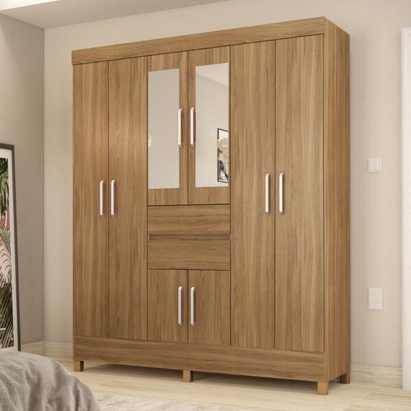 O guarda roupa é moderno, prático e possui um amplo espaço para que você possa guardar tudo o que quiser. Possui ótimo espaço inferior para acomodar sapatos. Pés em pvc medidas do produto: altura:201 cm largura:162 cm comprimento:47 cm informações complementares: acompanha espelho: sim cor:amendola gavetas: sim (2) prateleiras: sim (4) cabideiros: sim (3) portas: sim (8) material: mdp peso suportado: 40kg distribuídos itens inclusos: - 01 guarda roupa; - kit completo para montagem, manual detalhado de instruções para montagem. Garantia: 3 meses contra defeito de fabricação. Informações adicionais: - fotos meramente ilustrativas do produto no ambiente. - os objetos que ambientam as fotos não acompanham o produto; - verificar descrição e tamanho do produto antes da compra. - avaliar a mercadoria no ato do recebimento e recusar em caso de divergência ou avarias. - mantenha as informações de contato e endereço de entrega atualizados para entrarmos em contato caso necessário. - limpar com flanela ou pano macio seco, não utilizar produtos abrasivos, desengordurantes, álcool ou solvente. Não expor o produto diretamente à luz solar e à umidade. * sugerimos a contratação de um montador profissional para a montagem do produto. Não nos responsabilizamos por avarias causadas no ato da montagem. * não nos responsabilizamos pela montagem e desmontagem do produto no ato da entrega e devolução, assim como os custos gerados nestas situações. * a transportadora entregará o produto no andar térreo do endereço de entrega. * não nos responsabilizamos por subir escadas, corredores e elevadores ou transporte por guincho em apartamentos.