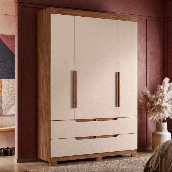 O guarda- roupa tem um modelo moderno o que trás elegancia para seu quarto além de um amlpo espaço interno. Em mdp 04 gavetas com corrediças telescópicas puxadores de mdf resvestidos cabideiros de aluminio pés inclusos interna 100% na cor do produto. Dimensões do produto: alt...